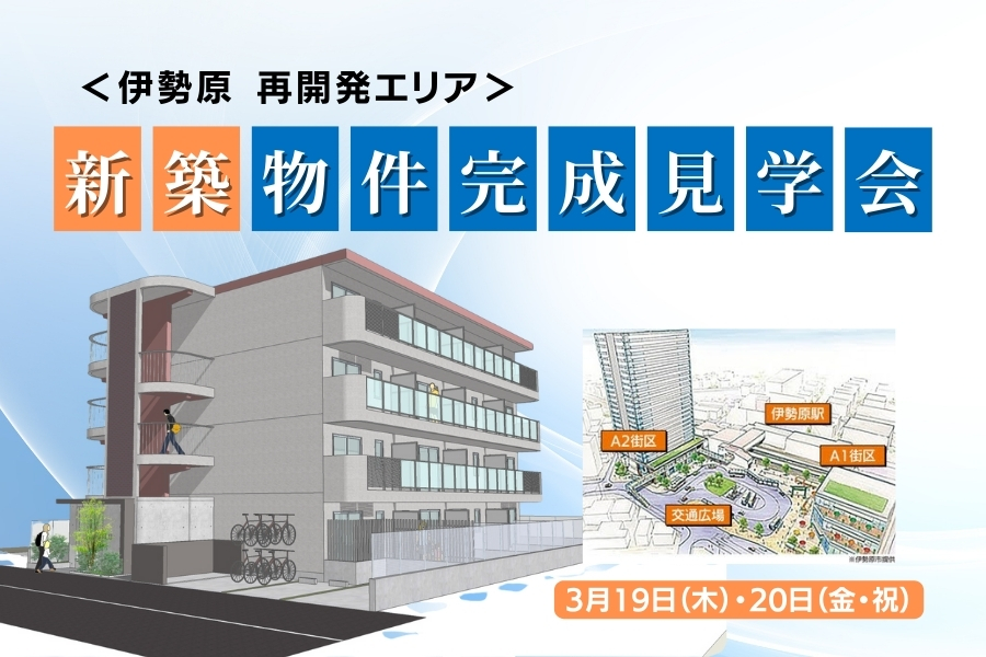 news お知らせ トップページ ・ お知らせ ・ 【イベント開催】伊勢原エリアにて新築マンション完成見学会を開催 2026.02.06 イベント 【イベント開催】伊勢原エリアにて新築マンション完成見学会を開催 ユーミーらいふグループで建築・不動産ノウハウを担う株式会社丸山アーバンは、3月19日(木)・20日(金・祝)の2日間、伊勢原市桜台にて新築マンション完成見学会を開催します。 再開発が進む伊勢原駅周辺に完成した鉄筋コンクリート造の賃貸マンションを会場に、建物の品質に加え、立地条件やまちの将来性を含めてご覧いただけます。 長期的な賃貸運用や相続を見据えた住まいづくりについて、現地で確認いただける、少人数・予約制の見学会です。 詳しい内容は以下のリンクよりご覧いただけます。 【伊勢原市桜台】3/19(木)20(金祝)新築マンション完成見学会 一覧に戻る